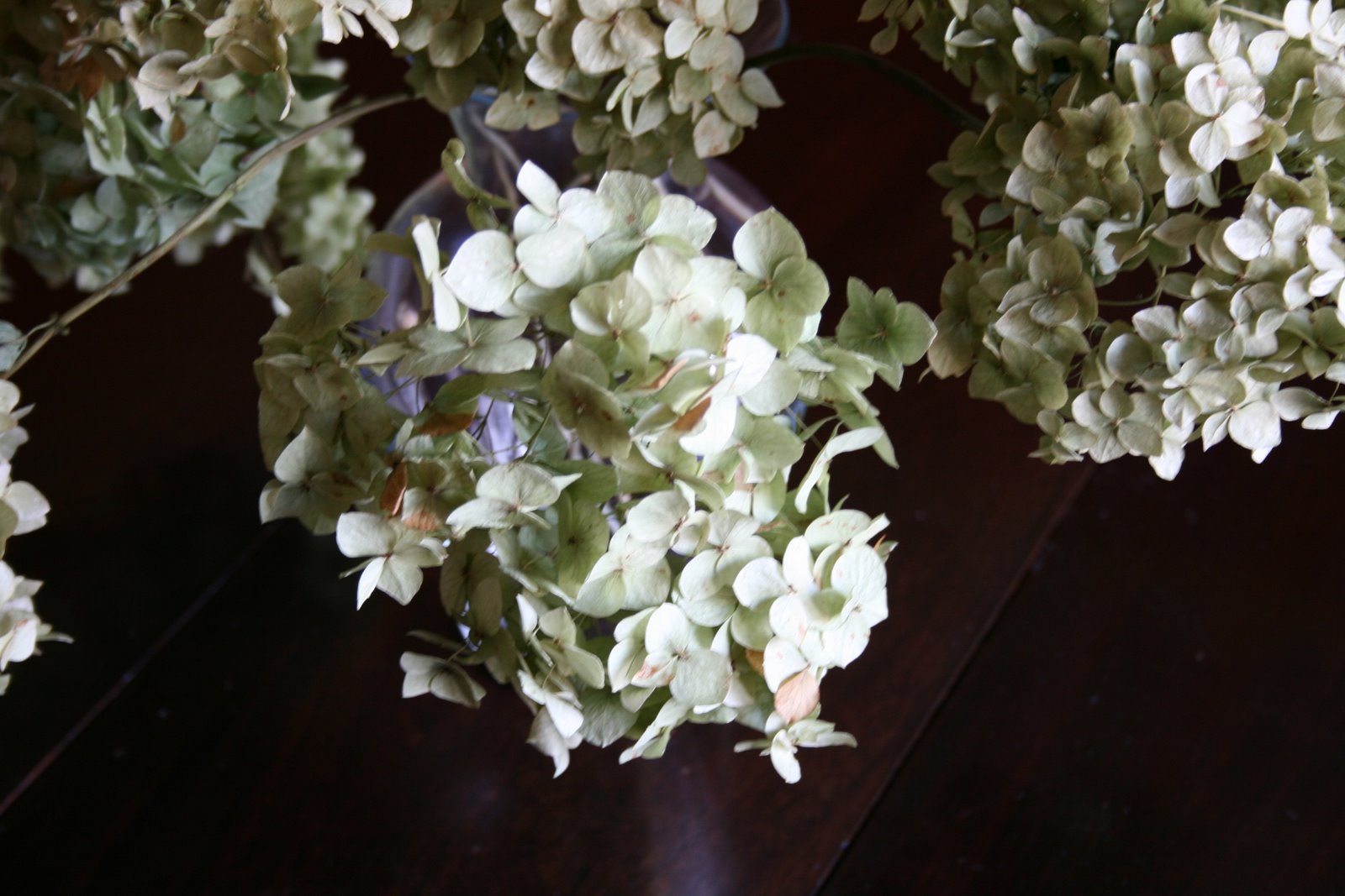 I love Annabelle hydrangeas. I wrote about them in my color post. Thank you for showing them to me dried. I’ll do that at the end of next summer. They look so elegant on your table.~~Dee