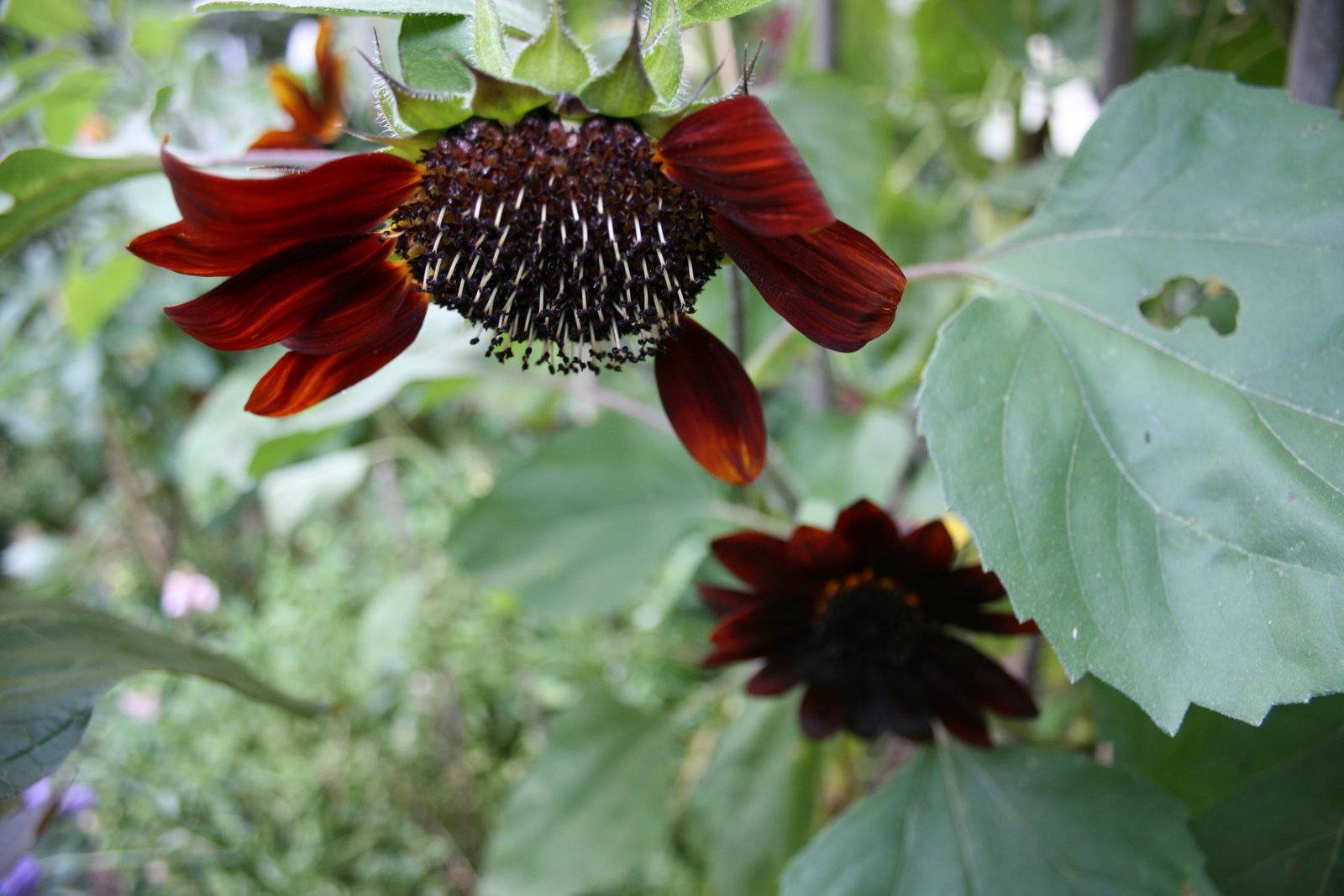 Did you get any rain from Hanna today? Here in Nyack we are soaked! >>Nice sunflowers. Don’t you love the way those chocolate cherries look from the back with the yellow streaks? Really pretty. I also have some of those with the curled yellow spikey petals. Any idea what variety those are? >>Thanks for the links to the world garden blogs. The number of gardening blogs can be really overwhelming so this is helpful!