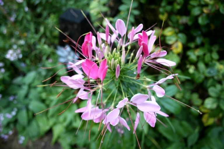 “Spider flowers (cleome) are big and are sometimes hard to plant in the garden without them looking like stiff soldiers. But once spider flowers are allowed to self seed, it transforms them. They look very natural growing through other plants and often to different heights depending on where they are.