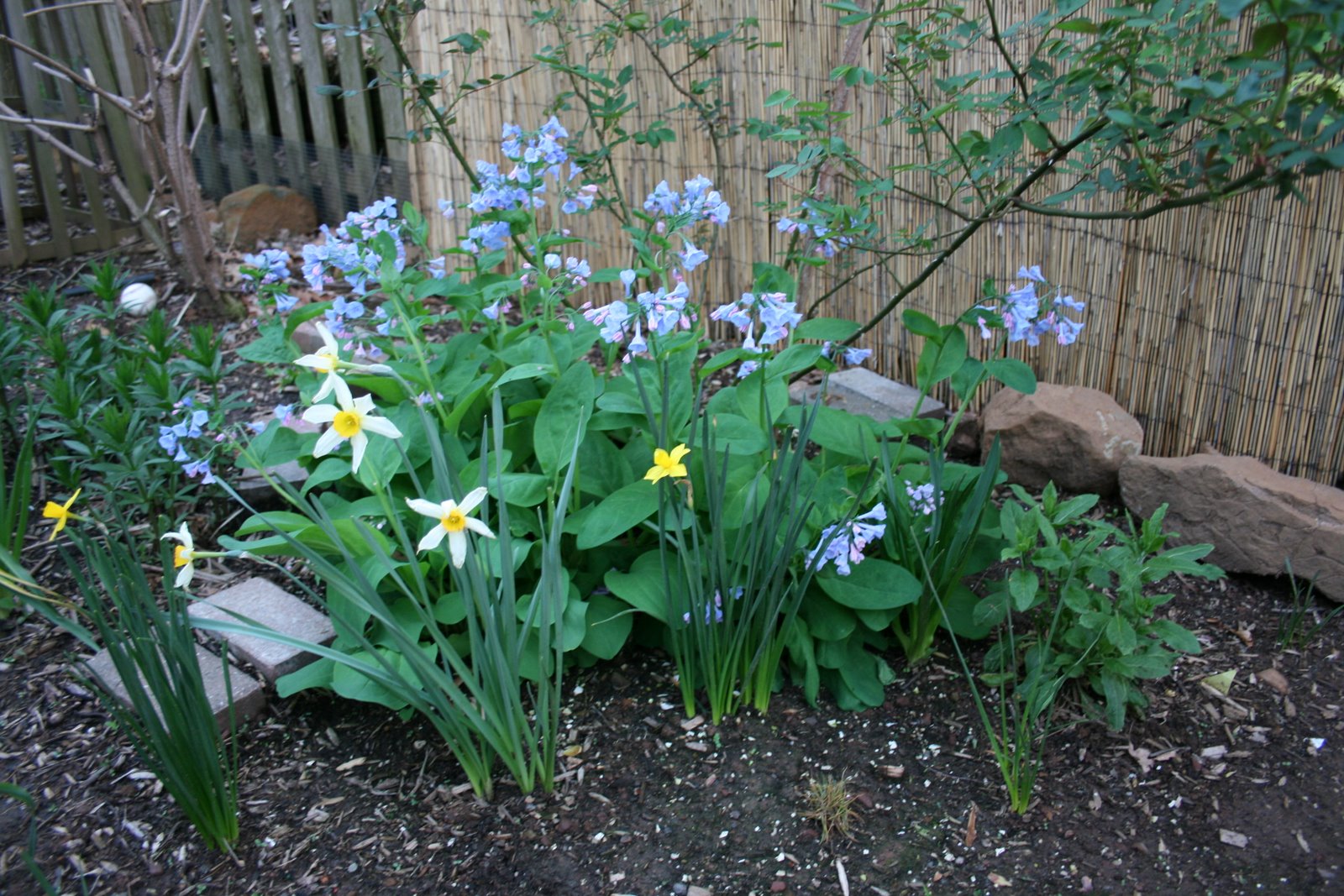 Virginia bluebells highlight the spring ephemeral season for me. As I wrote in my post about them last year, they continue to slowly and delightfully self-seed throughout the garden.