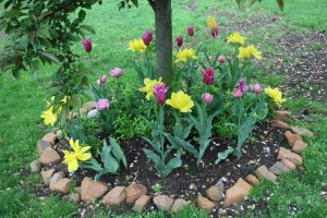 Here is a mix of multi-colored tulips in the mixed Front Border.