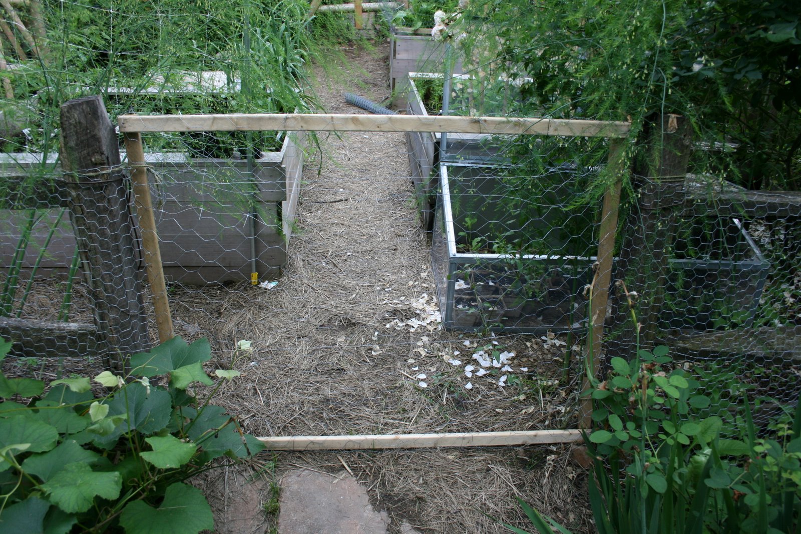 At the end of last year, after seeing some of my hard-earned vegetables stolen before we could enjoy them, I resolved to improve the situation for this year. The first step, early this season, was asking my husband to create a chicken wire cover for one of the raised vegetable beds, which you can see and read about