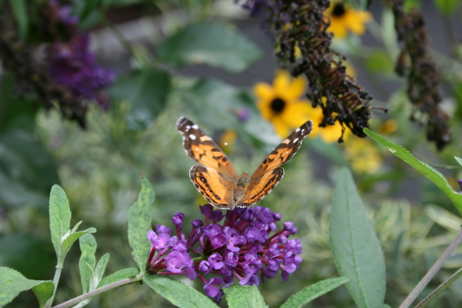 I really miss not getting a beautiful butterfly picture this year .. I don't know why they have not visited my garden .. were they here when I was not ? Darn ! Beautiful picture : ) What ever her name ? LOL