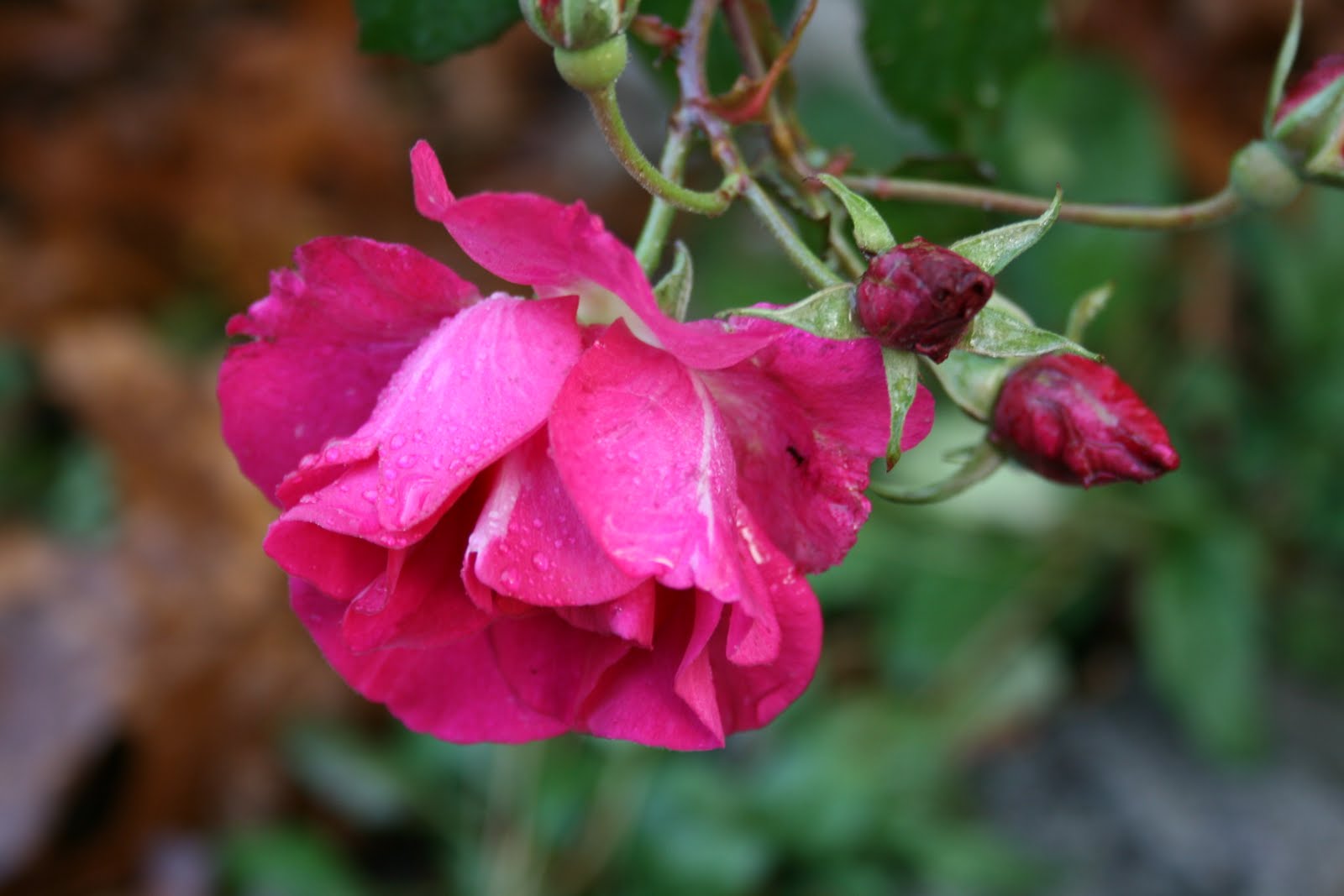 End of Season Roses: Rose de Rescht in the Egg Garden